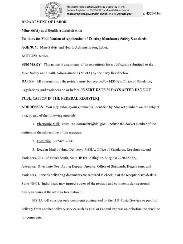 This document is scheduled to be published in the Federal Register on 03/30/2021 and available online at Billing federalregister.gov/d/202106484, and on gov info. Goode: 452043PDEPARTMENT OF LABOR