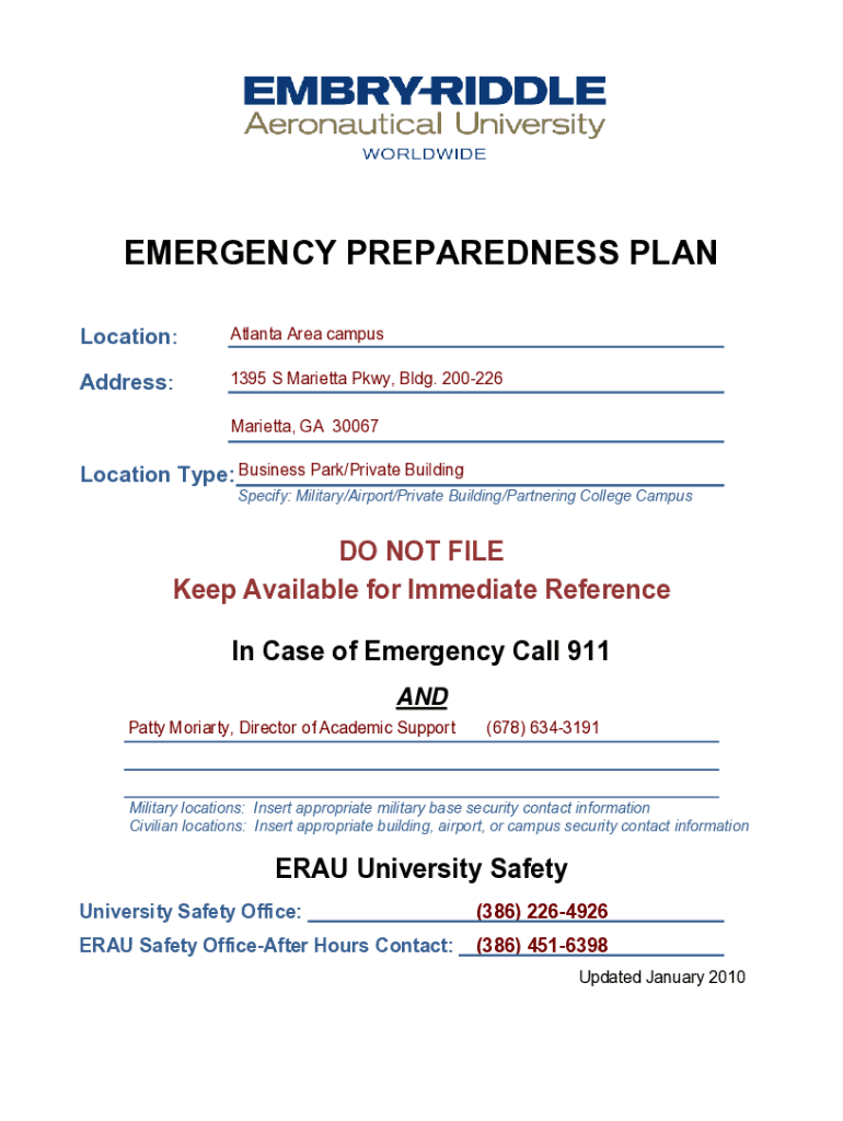 Get the free EMERGENCY PREPAREDNESS PLAN - EmbryRiddle Aeronautical University