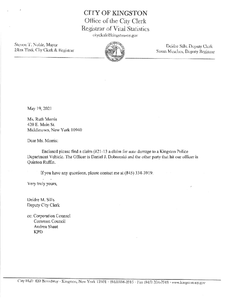 CIryOFKIIGSTON Office of the City Clerk Registrar of Vital Statistics city rehi NGS Tony. GRC, Steven 1\'. Noble, Mayor)CIRC Sills, f)city ClclkIilisa\'finti, City Clark & RcgistrarSusa:r Matches,