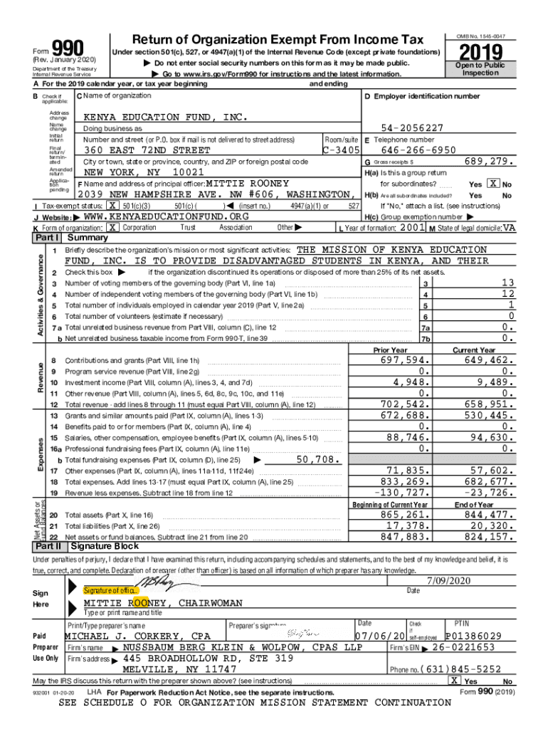 990Form (Rev. January 2020)Return of Organization Exempt From Income Tax OMB No. 15450047| Do not enter social security numbers on this form as it may be made public. Open to Public InspectionDepartment