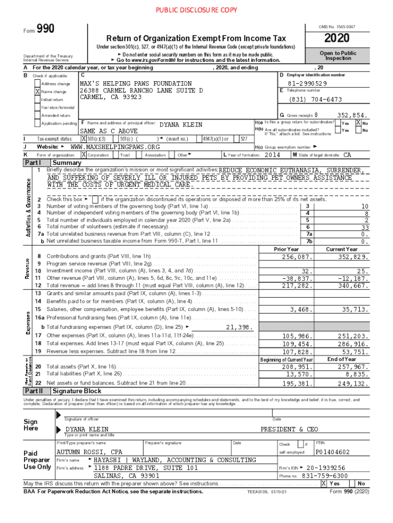 PUBLIC DISCLOSURE COPY Form990OMB No. 154500472020Return of Organization Exempt From Income Tax Under section 501(c), 527, or 4947(a)(1) of the Internal Revenue Code (except private foundations)G