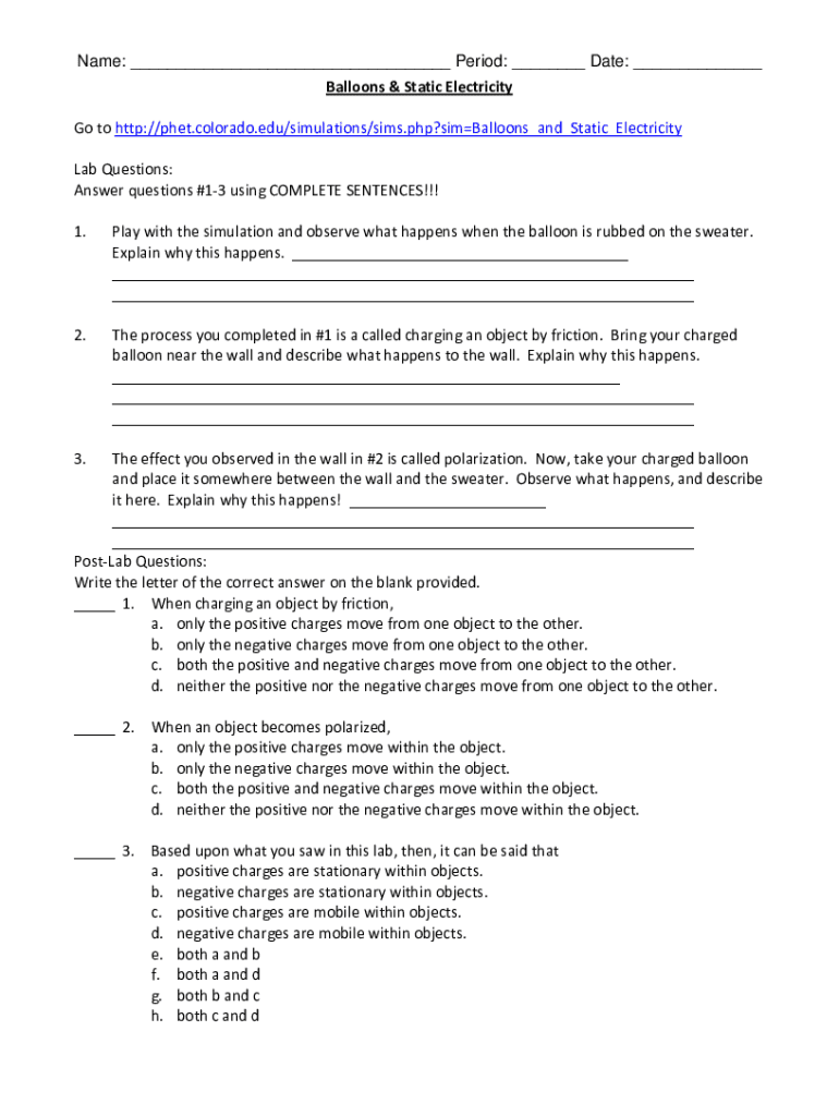 Get the free Name: Period: Date: Balloons & Static Electricity