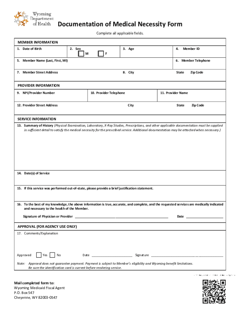Get the free Documentation of Medical Necessity Form - Wyoming Medicaid