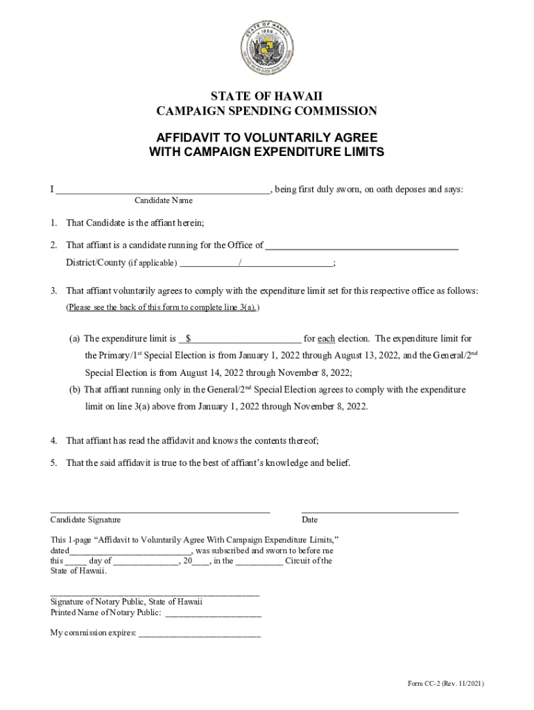 Get the free Affidavit To Voluntarily Agree With Campaign Expenditure ... - Hawaii