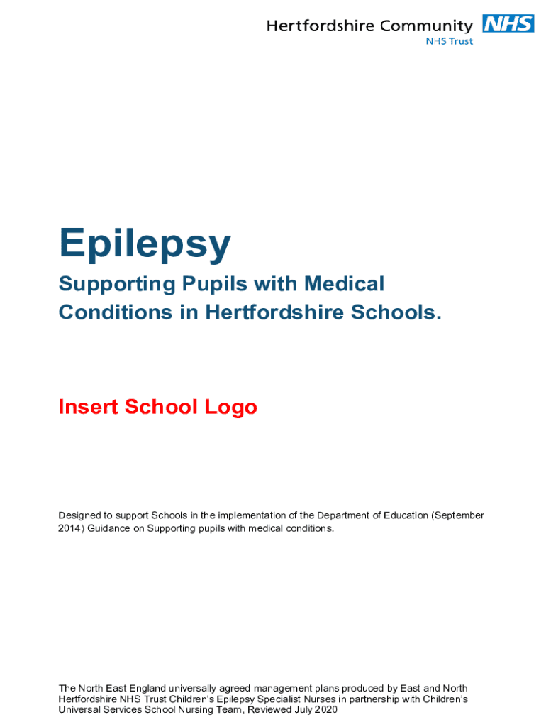 Epilepsy Supporting Pupils with Medical Conditions in Hertfordshire Schools. Insert School LogoDesigned to support Schools in the implementation of the Department of Education (September 2014) Guidance