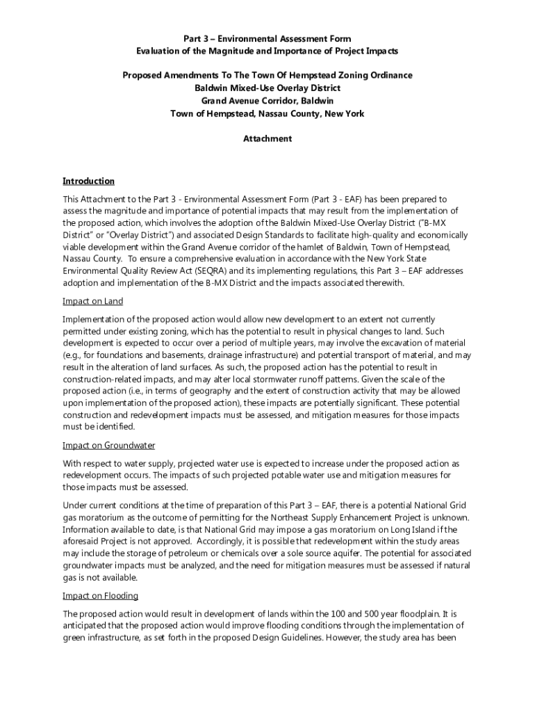 Part 3 Environmental Assessment Form Evaluation of the Magnitude and Importance of Project Impacts Proposed Amendments To The Town Of Hempstead Zoning Ordinance Baldwin Mixed Overlay District Grand