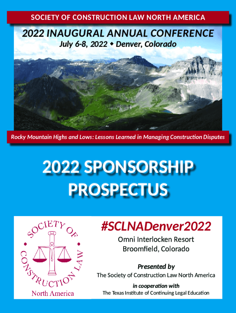 SOCIETY OF CONSTRUCTION LAW NORTH AMERICA2022 INAUGURAL ANNUAL CONFERENCE July 68, 2022 Denver, Colorado Rocky Mountain Highs and Lows: Lessons Learned in Managing Construction Disputes2022 SPONSORSHIP