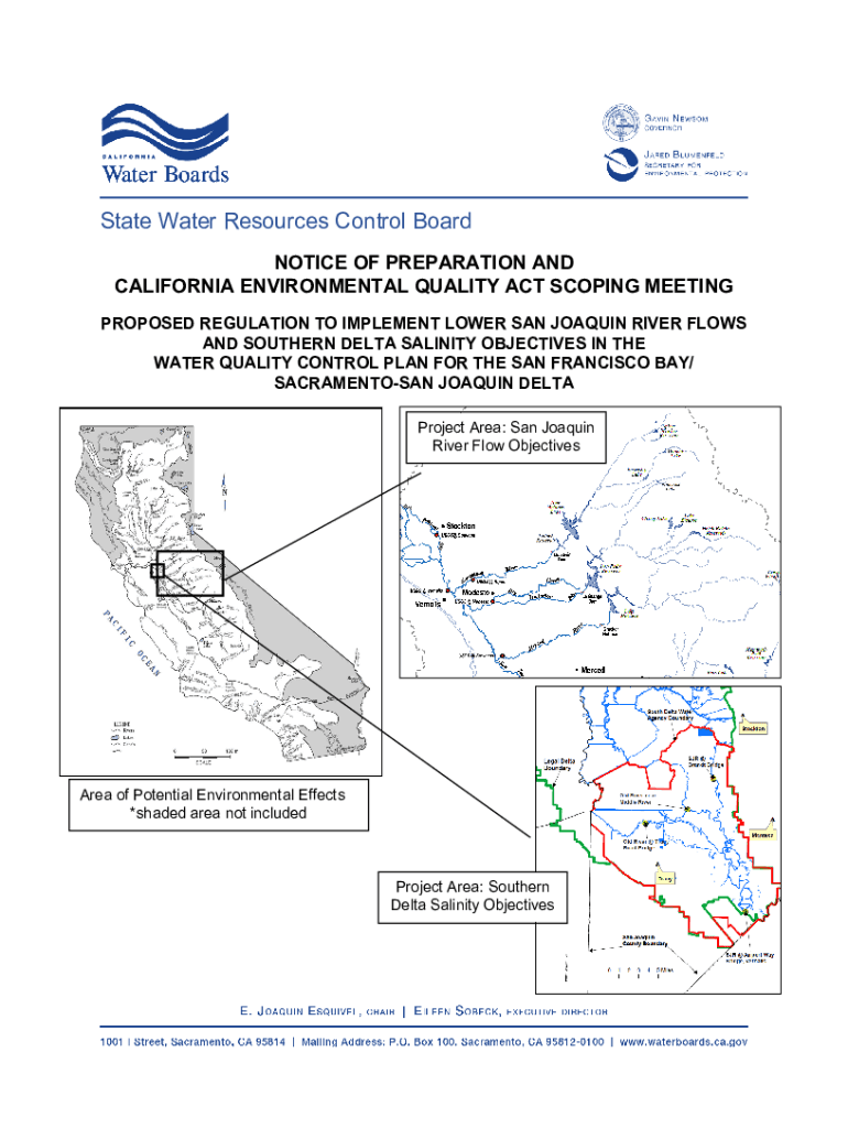 State Water Resources Control Board NOTICE OF PREPARATION AND CALIFORNIA ENVIRONMENTAL QUALITY ACT SCOPING MEETING PROPOSED REGULATION TO IMPLEMENT LOWER SAN JOAQUIN RIVER FLOWS AND SOUTHERN DELTA