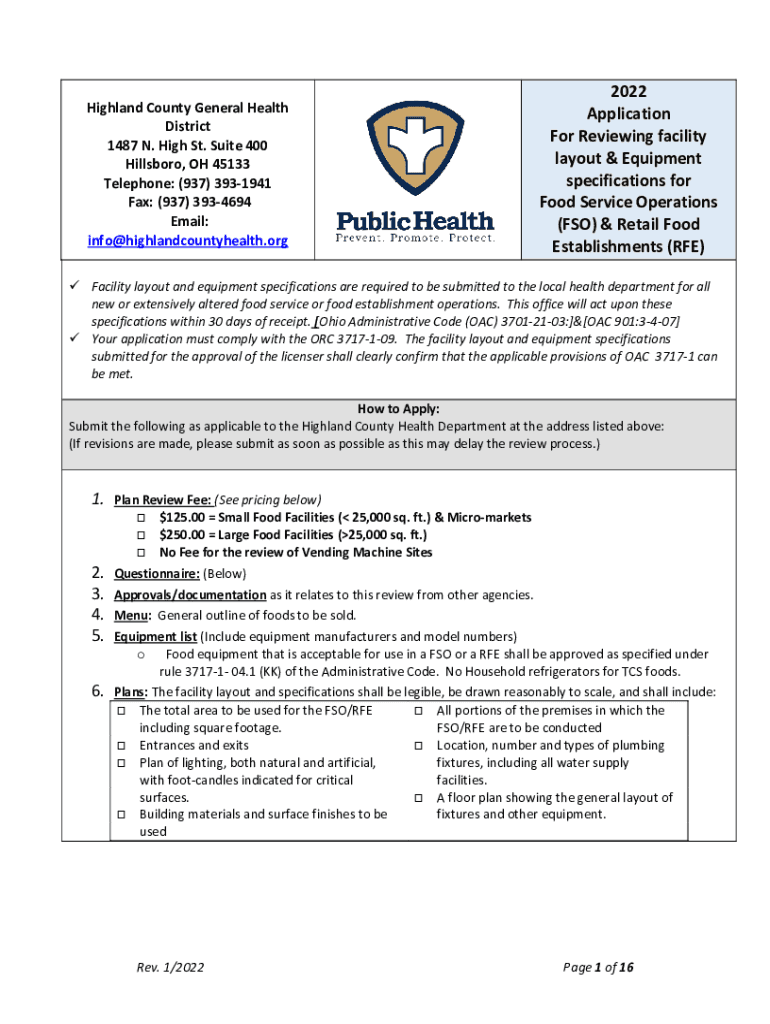 Highland County Health Department Food Facility Plan ReviewHighland County General Health District 1487 N. High St. Suite 400 Hillsboro, OH 45133 Telephone: (937) 3931941 Fax: (937) 3934694 Email: