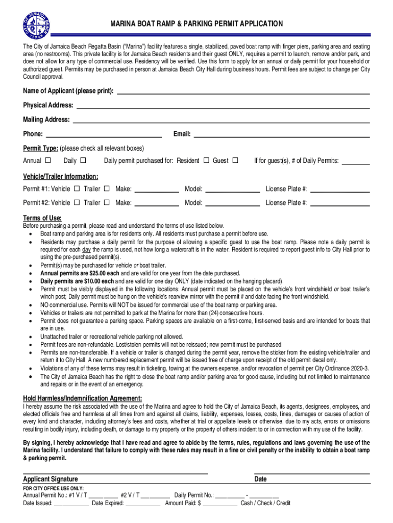 Get the free www.jamaicabeachtx.govmarina-boatMARINA BOAT RAMP & PARKING PERMIT APPLICATI...