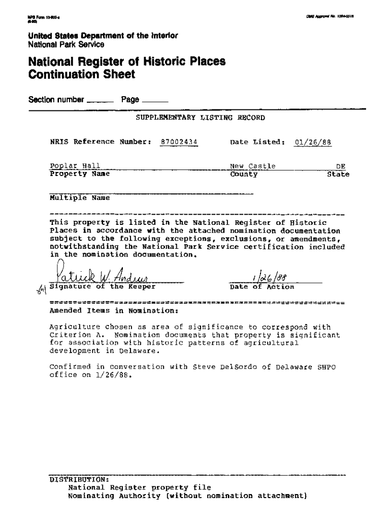 NPS Focm10×United States Department of the International Park ServiceNational Register of Historic Places Continuation Sheet Section number ___ Page ___ SUPPLEMENTARY LISTING RECORD IRIS Reference