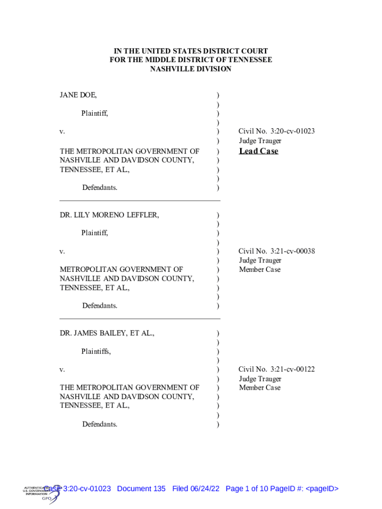 Get the free NashvilleMiddle District of TennesseeUnited States District Court