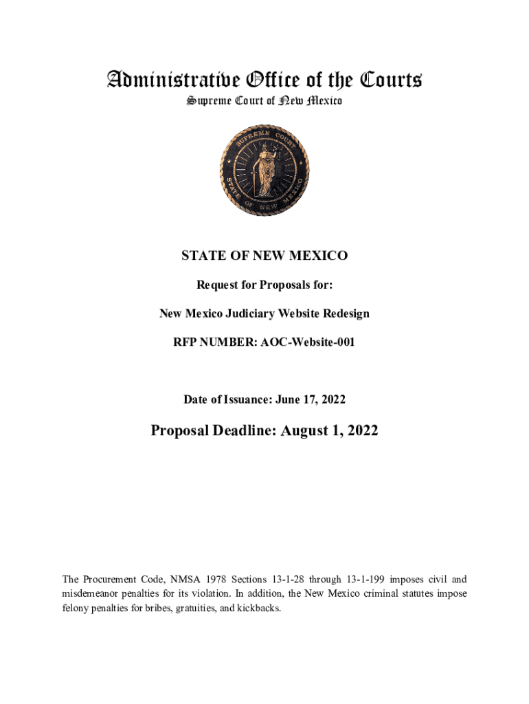 Administrative Office of the Courts Supreme Court of New Microstate OF NEW MEXICO Request for Proposals for: New Mexico Judiciary Website Redesign RFP NUMBER: AOCWebsite001Date of Issuance: June 17,