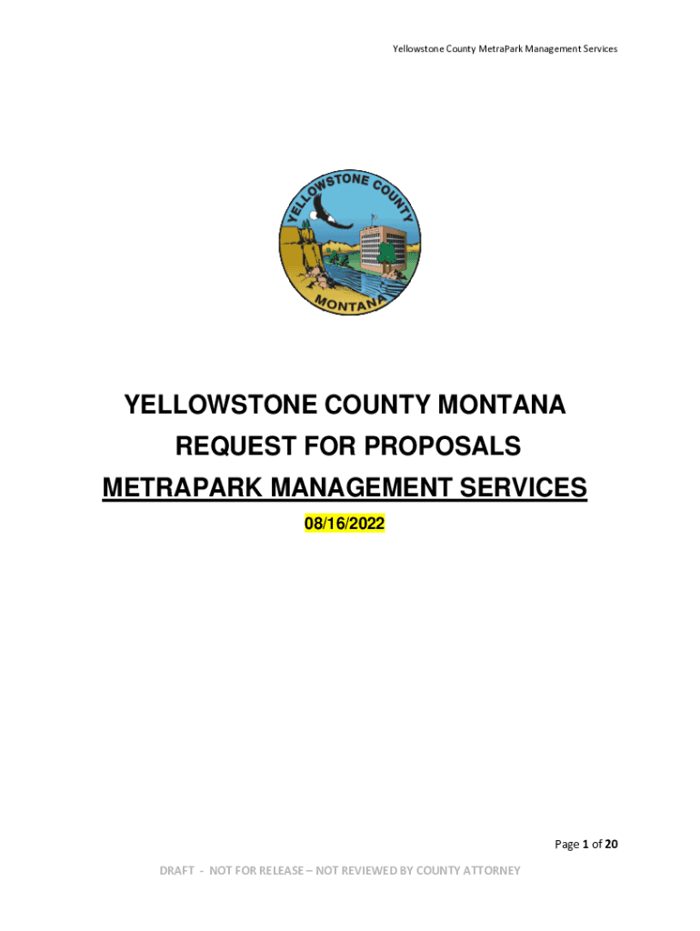 Yellowstone County Ultrapar Management ServicesYELLOWSTONE COUNTY MONTANA REQUEST FOR PROPOSALS ULTRAPAR MANAGEMENT SERVICES 08/16/2022Page 1 of 20 DRAFT NOT FOR RELEASE NOT REVIEWED BY COUNTY ATTORNEY