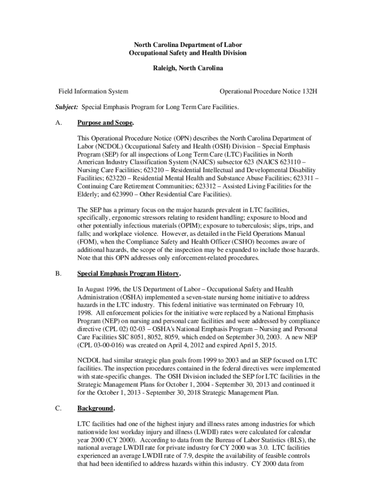 North Carolina Department of Labor Occupational Safety and Health Division Raleigh, North Carolina Field Information SystemOperational Procedure Notice 132HSubject: Special Emphasis Program for Long