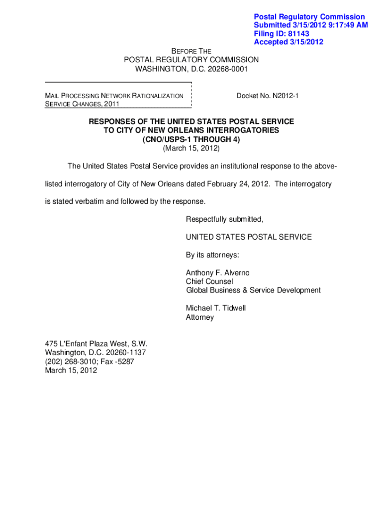 Get the free www.prc.gov docs 81RESPONSES OF THE UNITED STATES POSTAL SERVICE TO CITY OF NEW ...