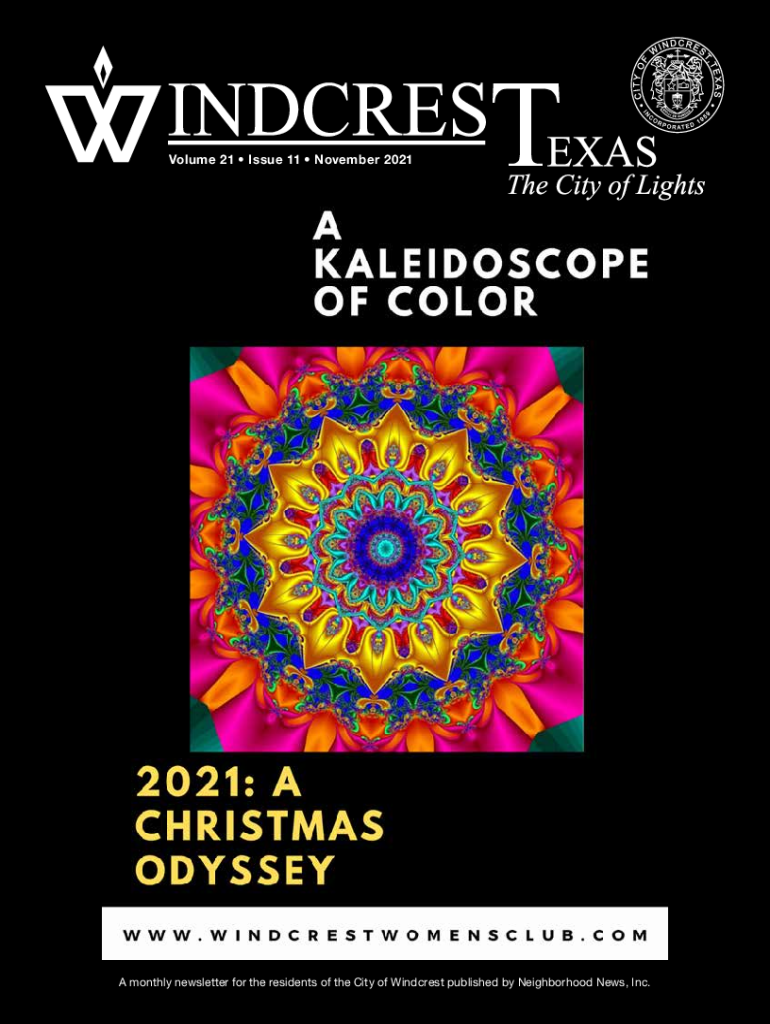 Volume 21 Issue 11 November 2021TA monthly newsletter for the residents of the City of Wind crest published by Neighborhood News, Inc. City of Wind crest 8601 Midcrown Wind crest, TX 782392598 City