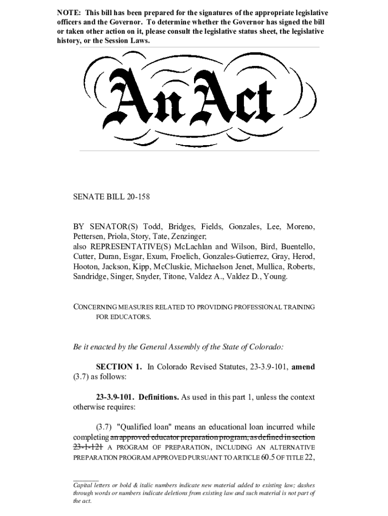 Fill out your senate bill 20-158 by online with pdfFiller!