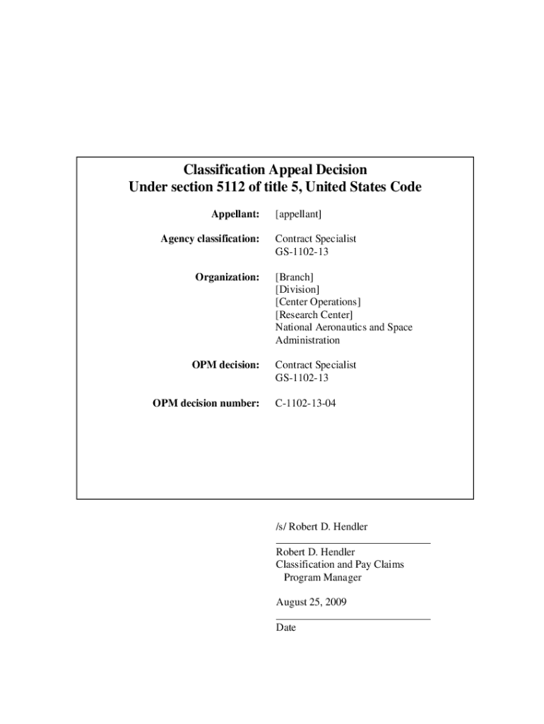 Classification Appeal Decision Under section 5112 of title 5, United States Code Appellant: Agency classification:Organization:OPM decision:OPM decision number:[appellant] Contract Specialist GS110213