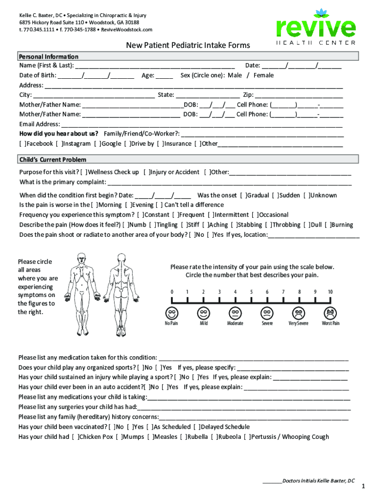 Kellie C. Baxter, DC Specializing in Chiropractic & Injury 6875 Hickory Road Suite 110 Woodstock, GA 30188 t. 770.345.1111 f. 7703451788 Revive Woodstock. Come Patient Pediatric Intake Forms Personal