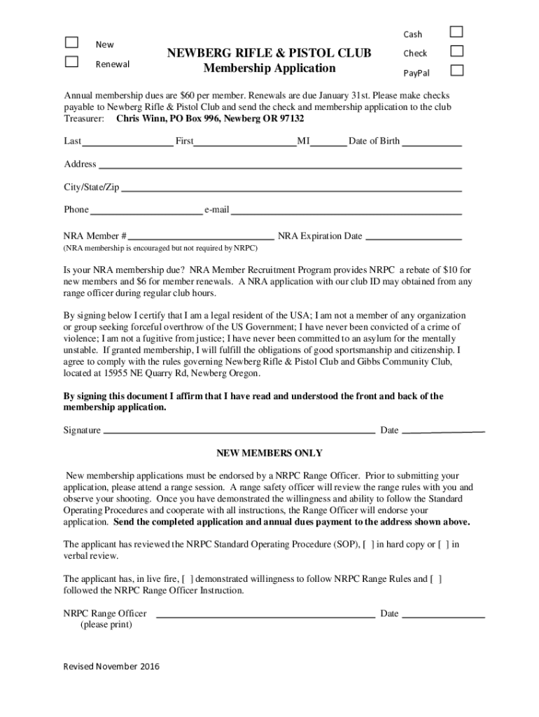 Get the free Cash New NEWBERG RIFLE & PISTOL CLUB Check Renewal Membership ... - NRPC
