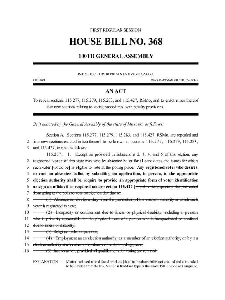 How to fill out wwwhousemogovhlrbillspdf0391hhouse bill no 368