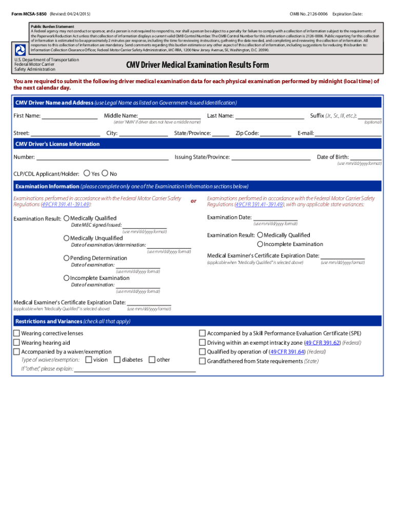 Form MCSA5850 (Revised: 04/24/2015)OMB No. 21260006Expiration Date:Public Burden Statement A Federal agency may not conduct or sponsor, and a person is not required to respond to, nor shall a person