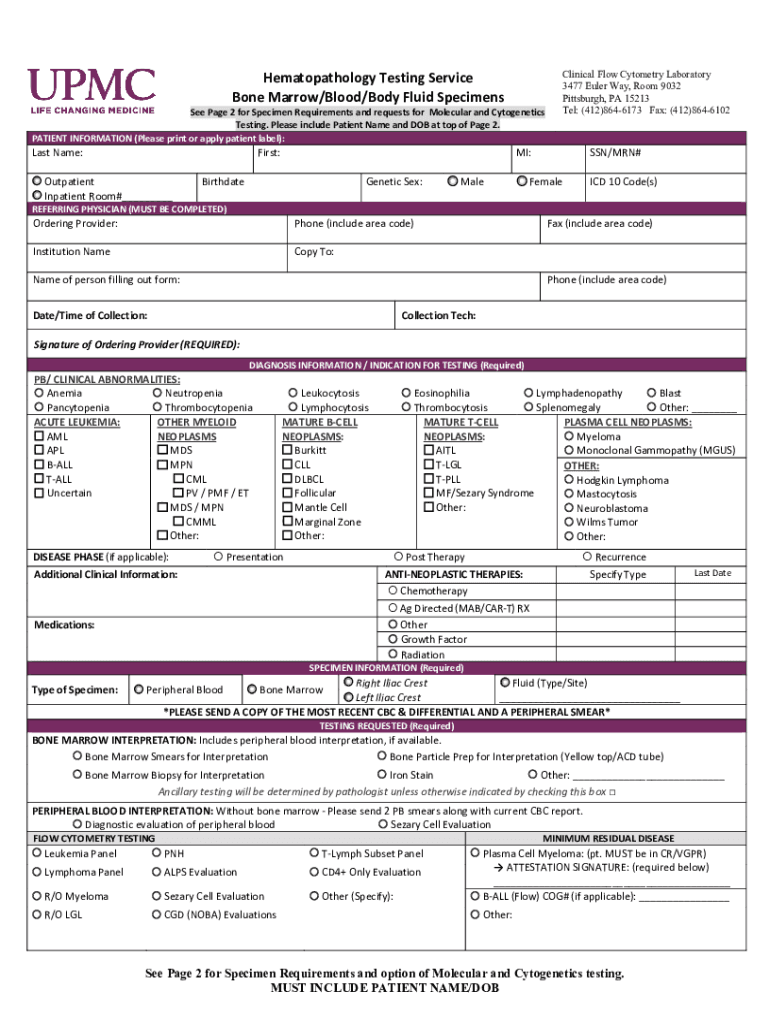 How to fill out pathupmcedudivisionshematopathhematopathology testing service bone