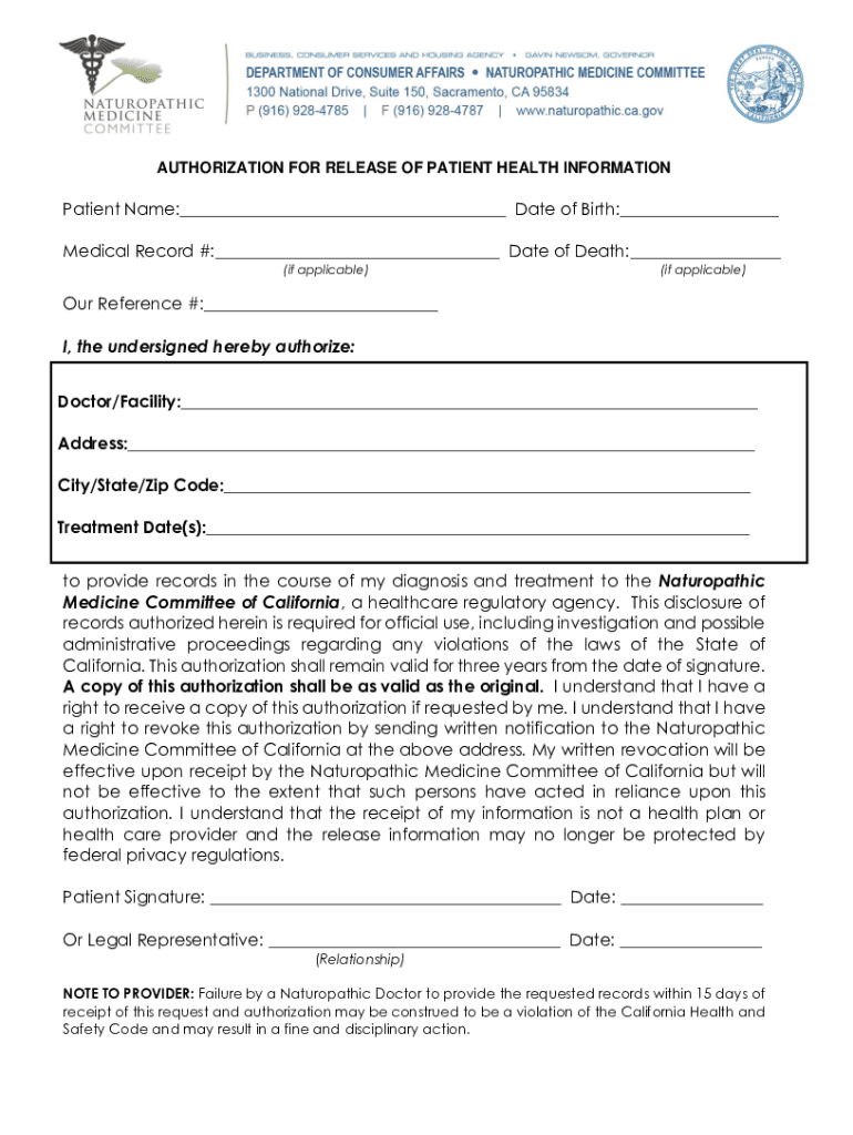 Get the free AUTHORIZATION FOR RELEASE OF PATIENT HEALTH INFORMATION - California