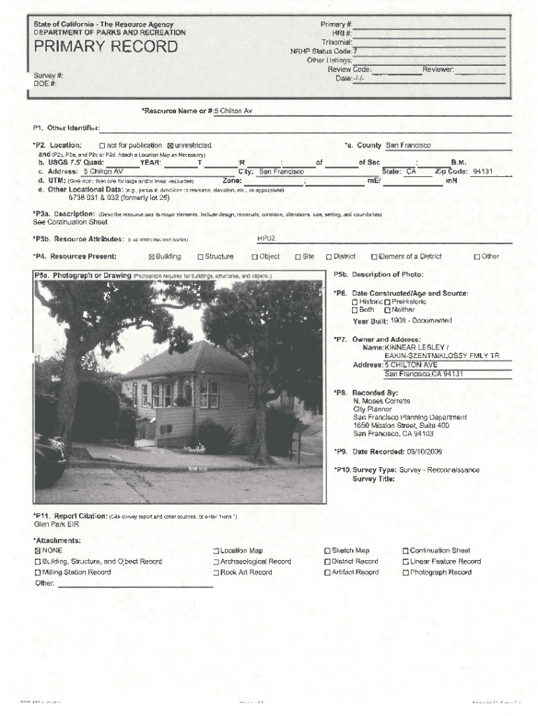 Get the free DEPARTMENT OF PARKS AND RECREATION HRI # PRIMARY RECORD