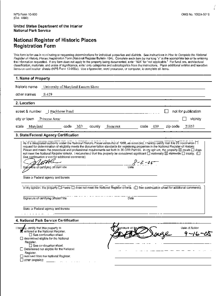NPS Form 10900 (Oct. 1990)0 MB No. 100240018United States Department of the Interior National Park ServiceNational Register of Historic Places Registration Form This form is for use in nominating