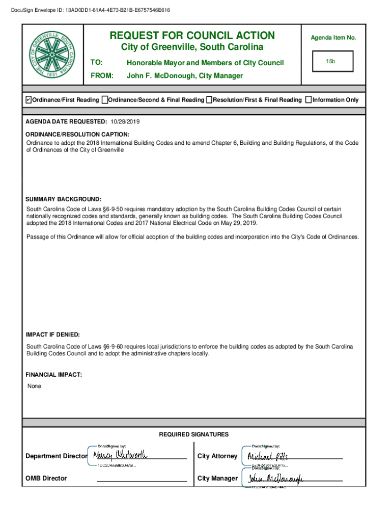 DocuSign Envelope ID: 13AD0DD161A44E73B21BE6757546E616REQUEST FOR COUNCIL ACTIONAgenda Item No. City of Greenville, South Carolina TO:Honorable Mayor and Members of City Councilor:John F. McDonough,