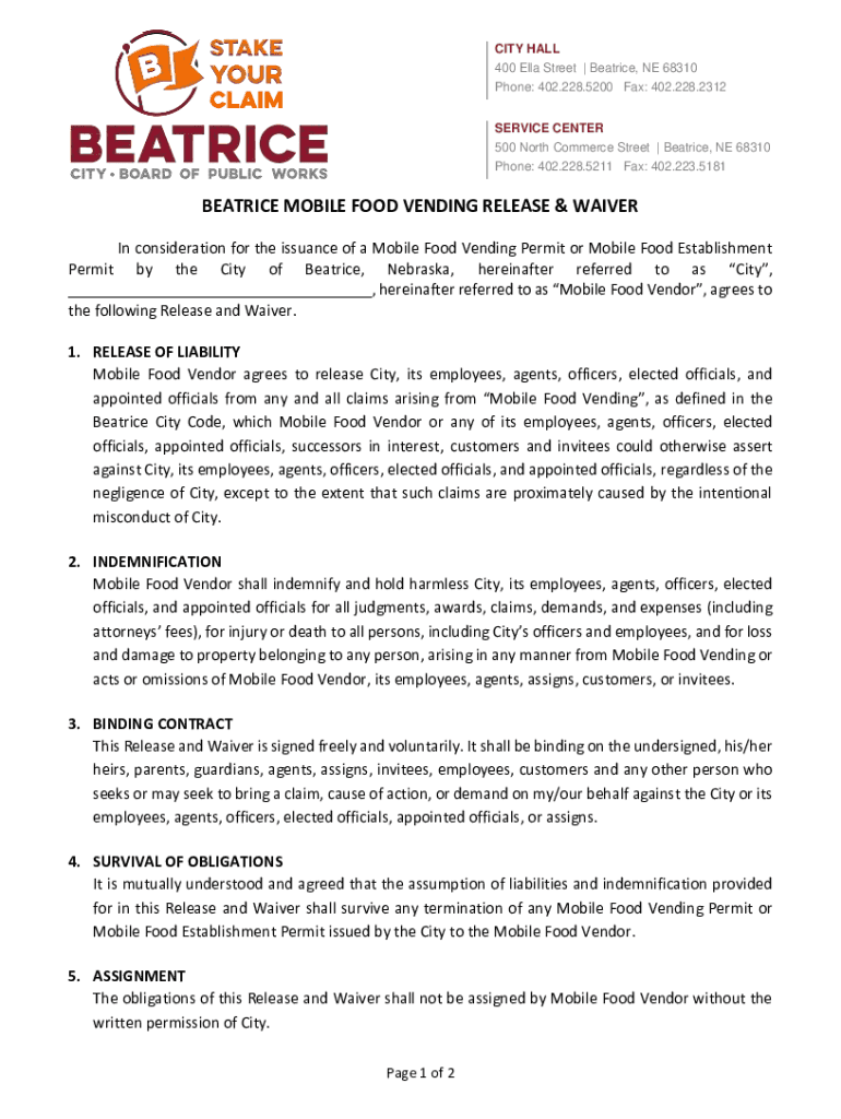 Get the free BEATRICE MOBILE FOOD VENDING RELEASE & WAIVER