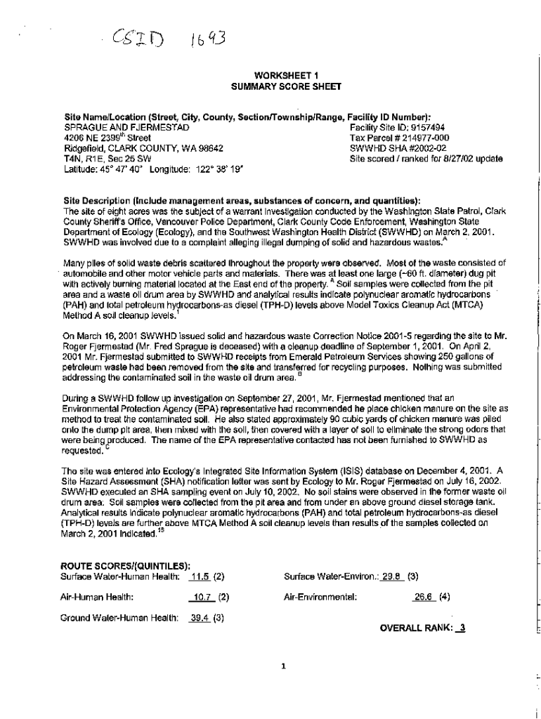 Get the free WORKSHEET1 SUMMARY SCORE SHEET Site Name/Location ...