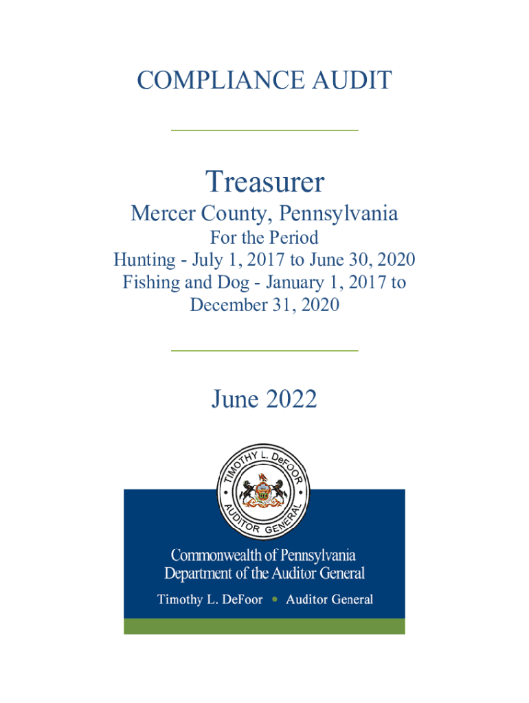 COMPLIANCE AUDIT___ Treasurer Mercer County, Pennsylvania the Period Hunting July 1, 2017, to June 30, 2020, Fishing and Dog January 1, 2017, to December 31, 2020___ June 2022The Honorable Amber White