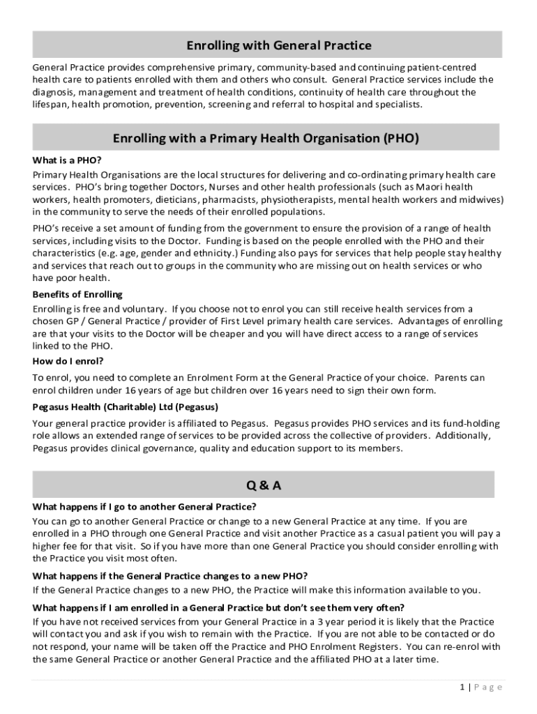 Enrolling with General Practice provides comprehensive primary, community based and continuing patientcentred health care to patients enrolled with them and others who consult. General Practice services