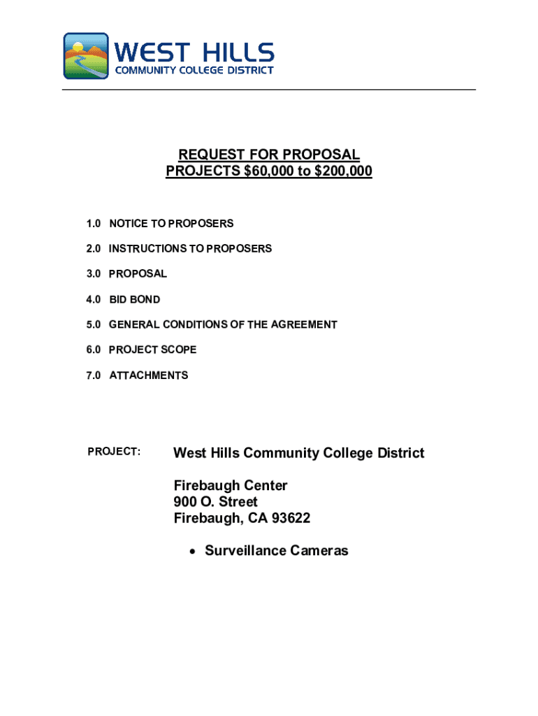 Get the free REQUEST FOR PROPOSAL PROJECTS $60,000 to $200,000 - West Hills College