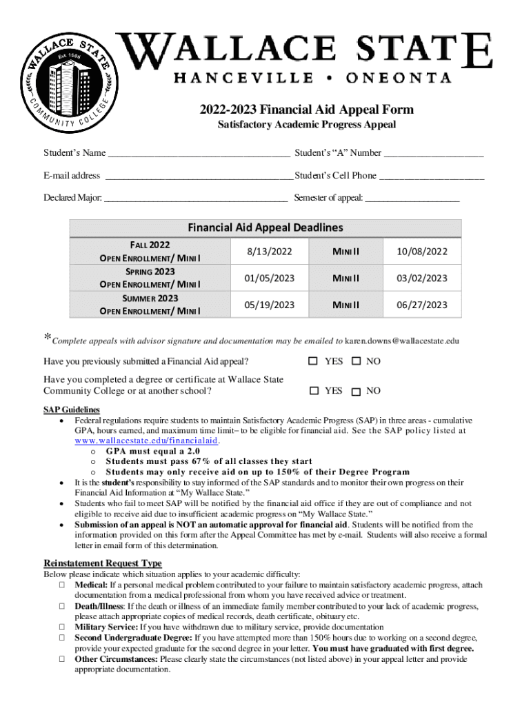 Get the free 2022-2023 Financial Aid Appeal Form - Wallace State Community College
