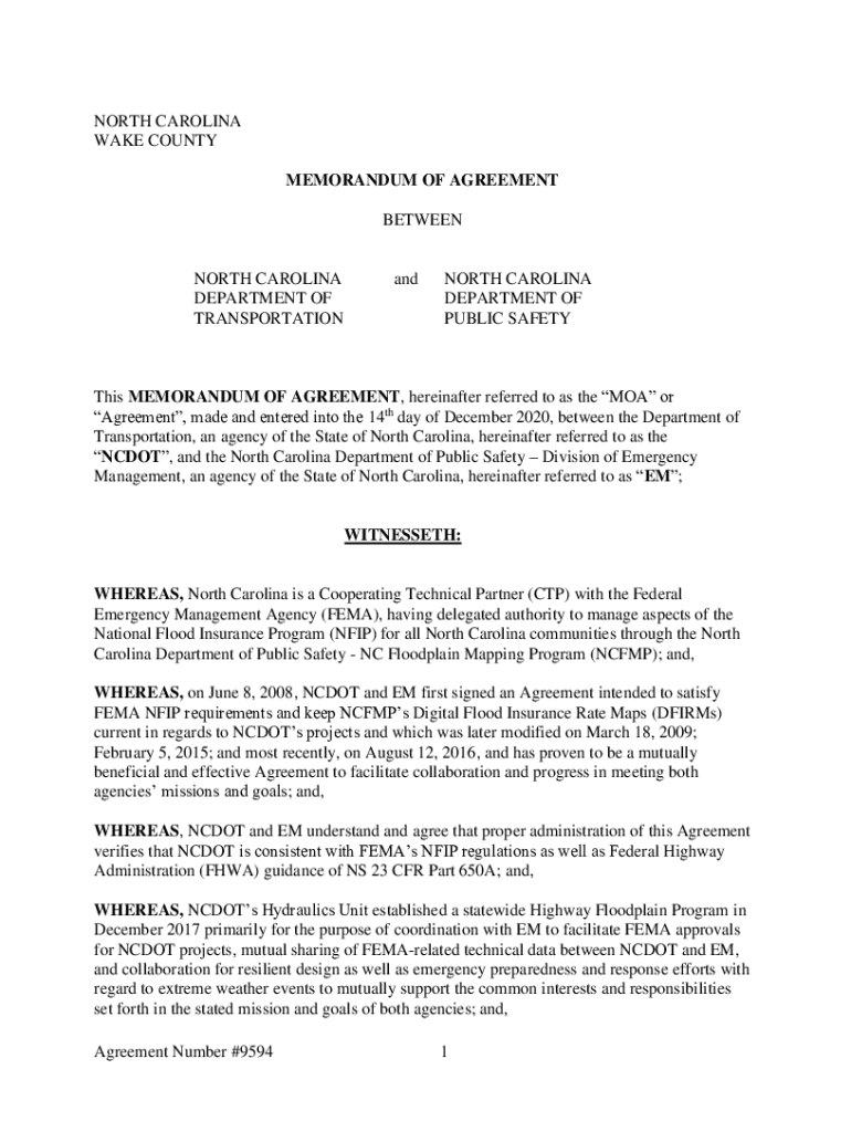 NORTH CAROLINA WAKE COUNTY MEMORANDUM OF AGREEMENT BETWEENNORTH CAROLINA DEPARTMENT OF TRANSPORTATIONandNORTH CAROLINA DEPARTMENT OF PUBLIC SAFETYThis MEMORANDUM OF AGREEMENT, hereinafter referred