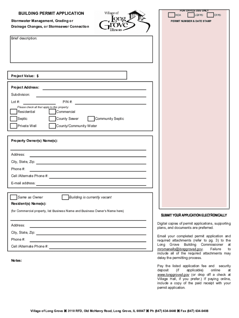 BUILDING PERMIT APPLICATIONVillage stormwater Management, Grading for OFFICE USE ONLY