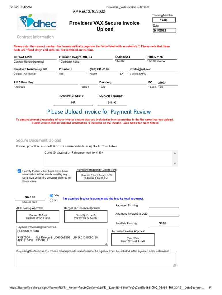 2/10/22, 9:42 AMAP REC 2/10/2022Providers_VAX Invoice Submittal Tracking Number1448Providers VAX Secure InvoiceUploadDate2/1/2022Contract Information Please enter the contract number first to automatically