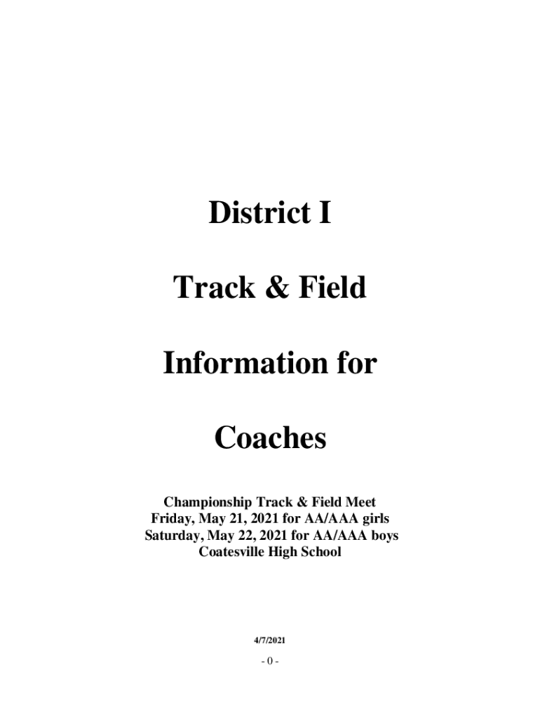 District I Track & Field Information for Coaches Championship Track & Field Meet Friday, May 21, 2021, for AA/AAA girls Saturday, May 22, 2021, for AA/AAA boys Batesville High School4/7/20210DISTRICT