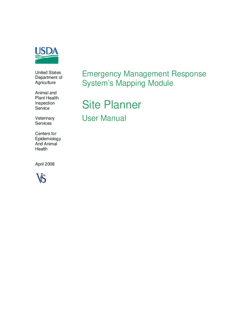 United States Department of Agriculture Animal and Plant Health Inspection Service Veterinary Services Centers for Epidemiology And Animal Health April 2008Emergency Management Response Systems Mapping
