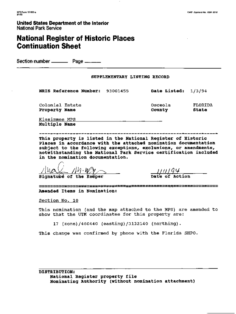 NFS Form 10900aOMB Approval No. 10240018United States Department of the Interior National Park ServiceNational Register of Historic Places Continuation Sheet Section number Page SUPPLEMENTARY LISTING