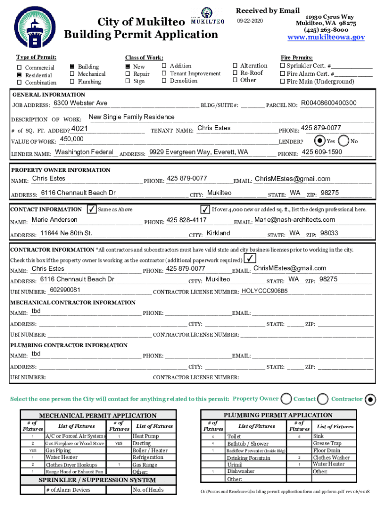Information such as property address, project description, construction plans, and contact information must be reported on a building permit application and pp.