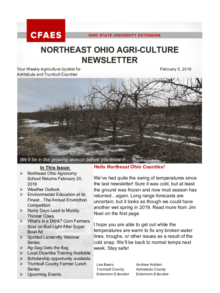 OHIO STATE UNIVERSITY EXTENSIONNORTHEAST OHIO AGRICULTURE NEWSLETTER Your Weekly Agriculture Update for Shaula and Trumbull Counties February 5, 2019Well be in the growing season before you know it