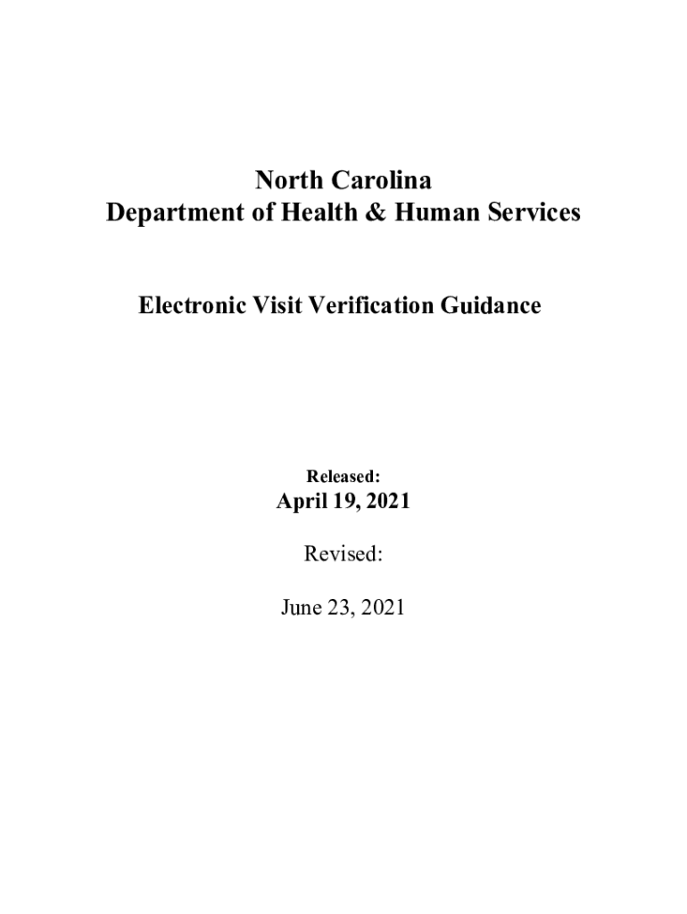 North Carolina Department of Health & Human Services Electronic Visit Verification GuidanceReleased:April 19, 2021, Revised: June 23, 2021Overview: This Electronic Visit Verification Guidance Document