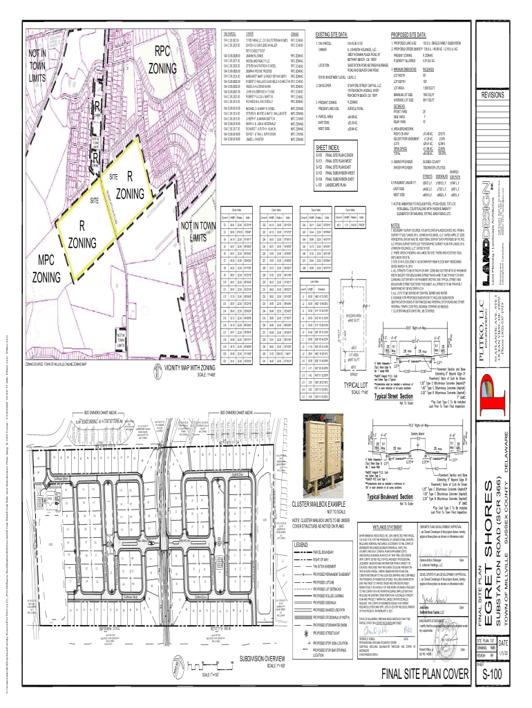 LOCATION:STATE INVESTMENT LEVEL: LEVEL 2PRESENT LAND USE:MPC ZONING MPC ZONINGS100 S101 S102 S103 S104 L100R ZONING NOT IN TOWN LIMITS LEGEND:E.G. F.G.LEGEND:EXISTING GRADE PROPOSED GRADE EXISTING