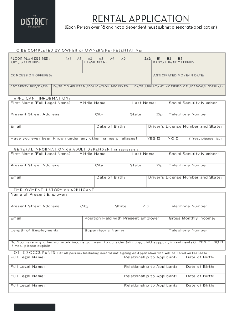 RENTAL APPLICATION (Each Person over 18 and not a dependent must submit a separate application’T O BE COMP L ET ED BY O W NER o r O IN ER s REP RES EN TA T FIVE : FLOOR PLAN DESIRED: APT ASSIGNED:
