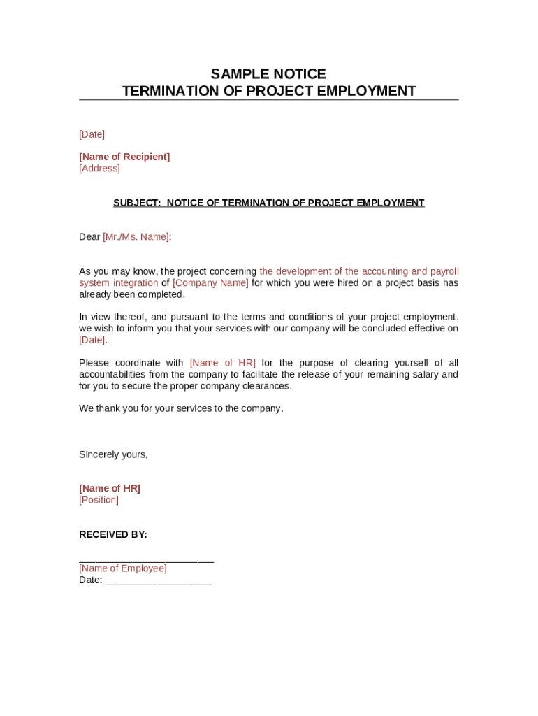 What is Sample Notice Termination of Project Employment. Sample Notice Termination of Project Employment Form?